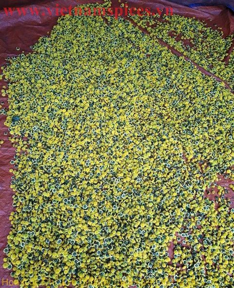 Hoa cúc chi khô được trồng và thu hái hoa sau đó phơi khô dưới ánh nắng mặt trời