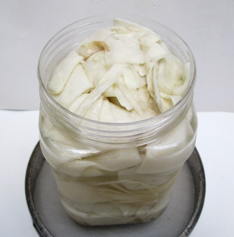 Măng tươi được làm sạch, bào mỏng sau đó muối làm măng chua tự nhiên